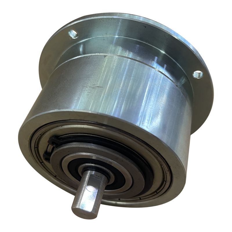磁粉離合器切斷電流時(shí):磁通隨激磁電流的消失而消失,磁粉在重力作用下又重新處于松散狀態(tài),并在離心力作用下,被甩在主動(dòng)轉(zhuǎn)子內(nèi)壁上,磁粉離合器再次處于分離狀態(tài)。有電流通過時(shí):磁輥中產(chǎn)生工作磁通,工作腔內(nèi)的磁粉沿磁通方向呈鏈狀連接起來(lái)形成磁粉鏈,磁粉離合器就是靠此時(shí)磁粉與磁粉、磁粉與工作面間的摩擦力和磁粉鏈間的抗剪力來(lái)傳遞轉(zhuǎn)矩,磁粉離合器處于結(jié)合狀態(tài)。