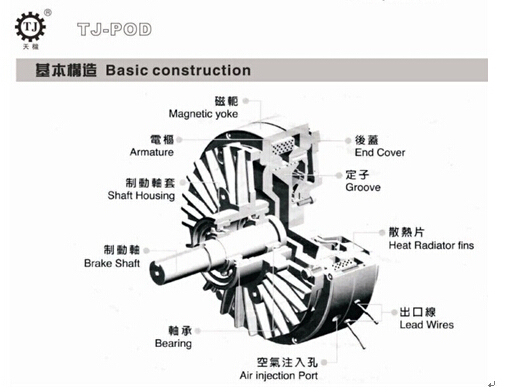 東莞天機傳動生產(chǎn)的磁粉制動器剎車器運行結(jié)構(gòu)圖: