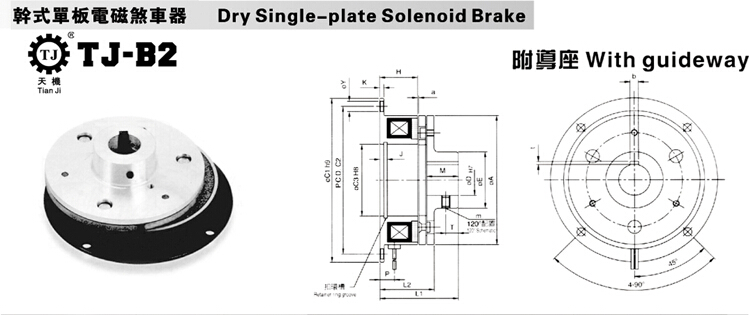 東莞天機(jī)傳動的電磁制動器(電磁剎車器)有三款分別為:干式單板電磁制動器(TJ-B)、干式單板電磁制動器帶導(dǎo)座(TJ-B1)、干式單板電磁制動器服軸承導(dǎo)座(TJ-B2)