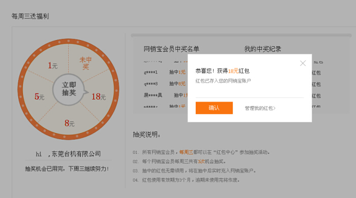 每周星期三都會(huì)有付費(fèi)推廣費(fèi)用的抽獎(jiǎng)活動(dòng),