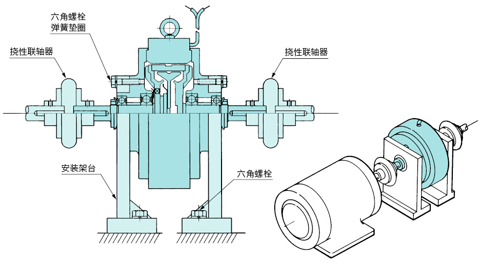 伸出軸型磁粉離合器安裝示例圖,需要請咨詢我們東莞天機(jī)傳動;