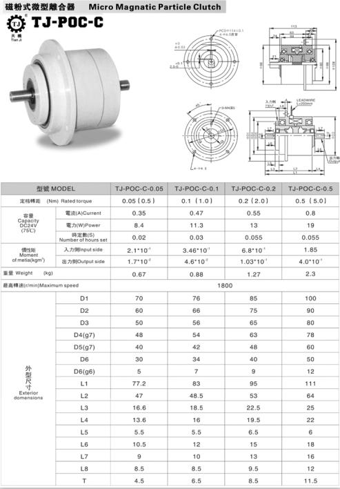 品牌:天機(jī)牌,類(lèi)型:小型雙出軸磁粉離合器,型號(hào):TJ-POC-C,包裝:紙箱+泡沫